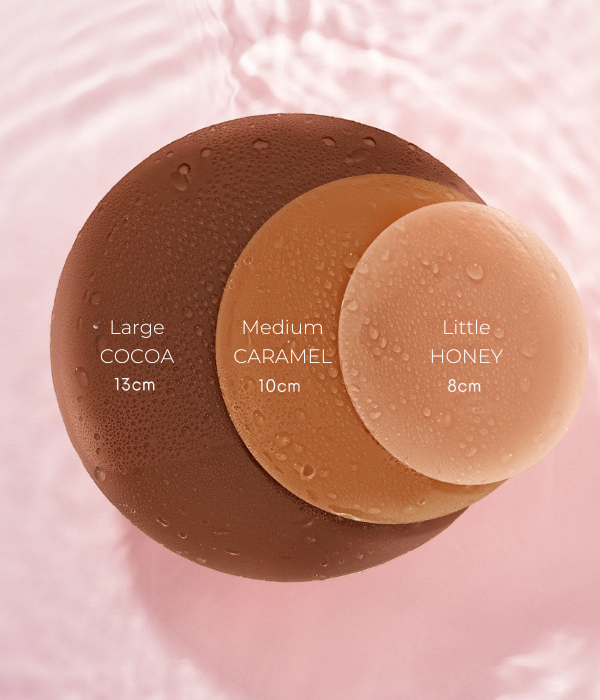 Nos Cakes sont recommandés sous les hauts moulants car nous n'utilisons pas d'adhésifs irritants pour assurer une couverture très douce. Les Cakes adhèrent doucement à la peau grâce à la chaleur naturelle de votre corps.