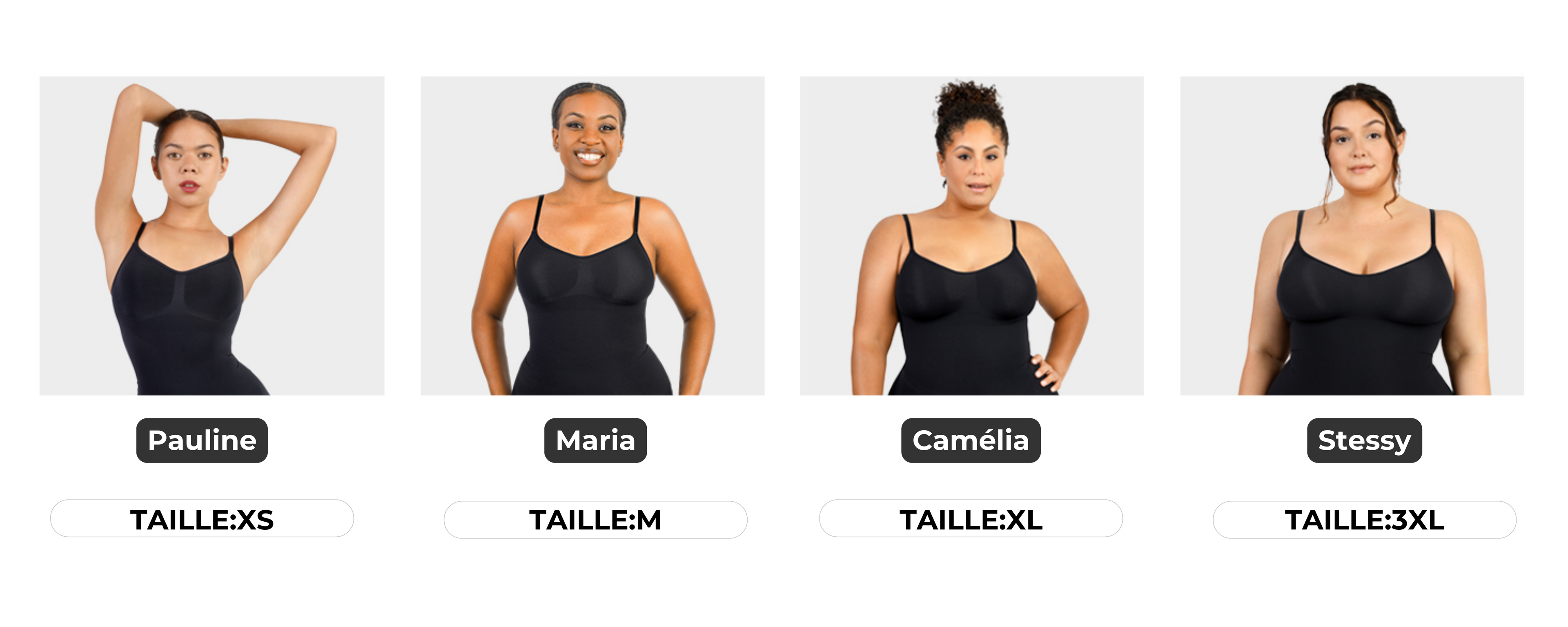 Veuillez vous référer à notre guide des tailles disponible sur chaque page produit. Il est recommandé de choisir une taille proche de la vôtre pour un effet sculptant sans gêne. Si vous êtes entre deux tailles, choisissez la taille inférieur pour un effet galbant poussé.