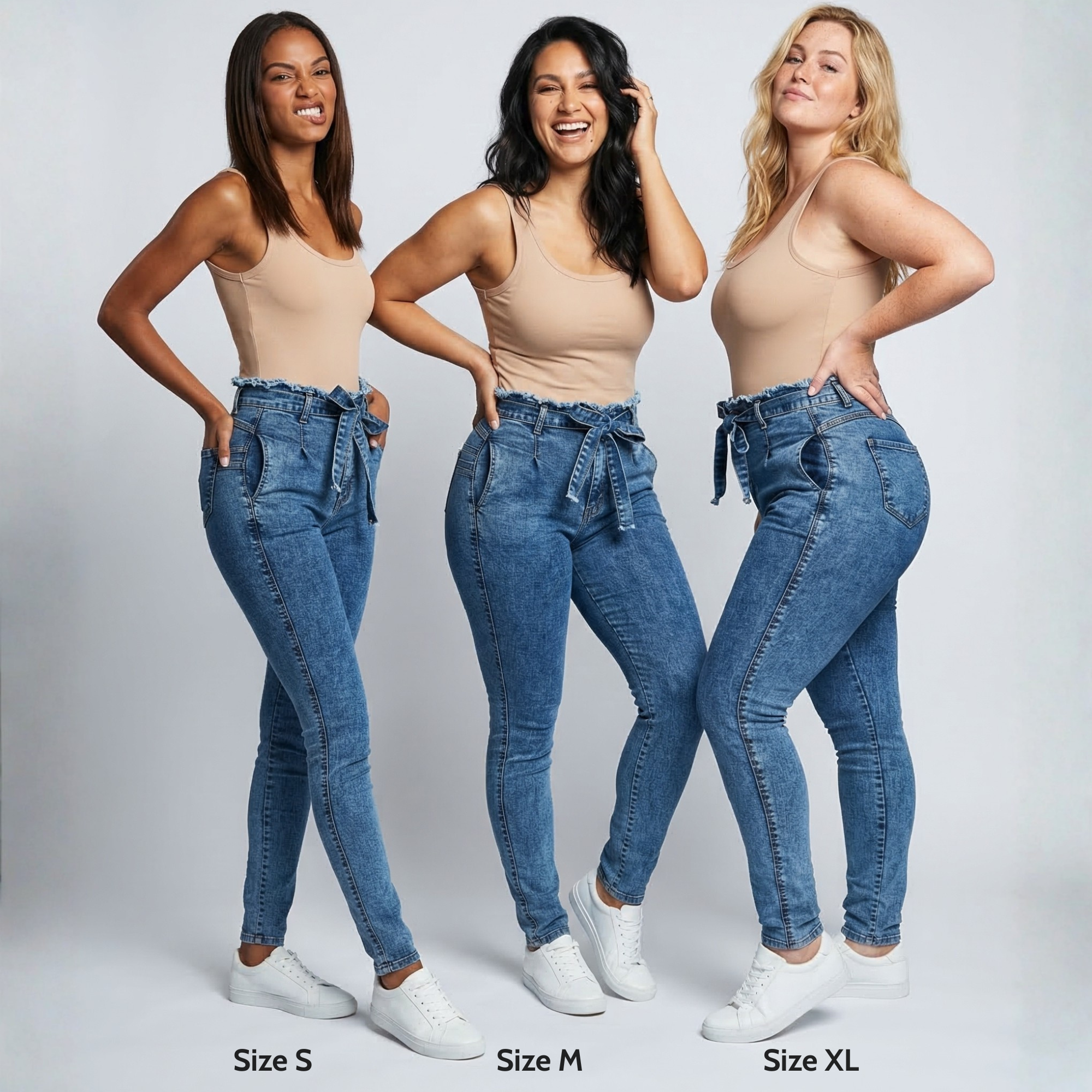 Yes. The CurveFitâ„¢ is designed specifically for women with real curves hips, thighs, and everything in between. The paperbag waist adjusts to your natural shape without squeezing, and the stretch denim adapts to your body instead of fighting it. We offer sizes S through 3XL because great fit shouldn't depend on your size.